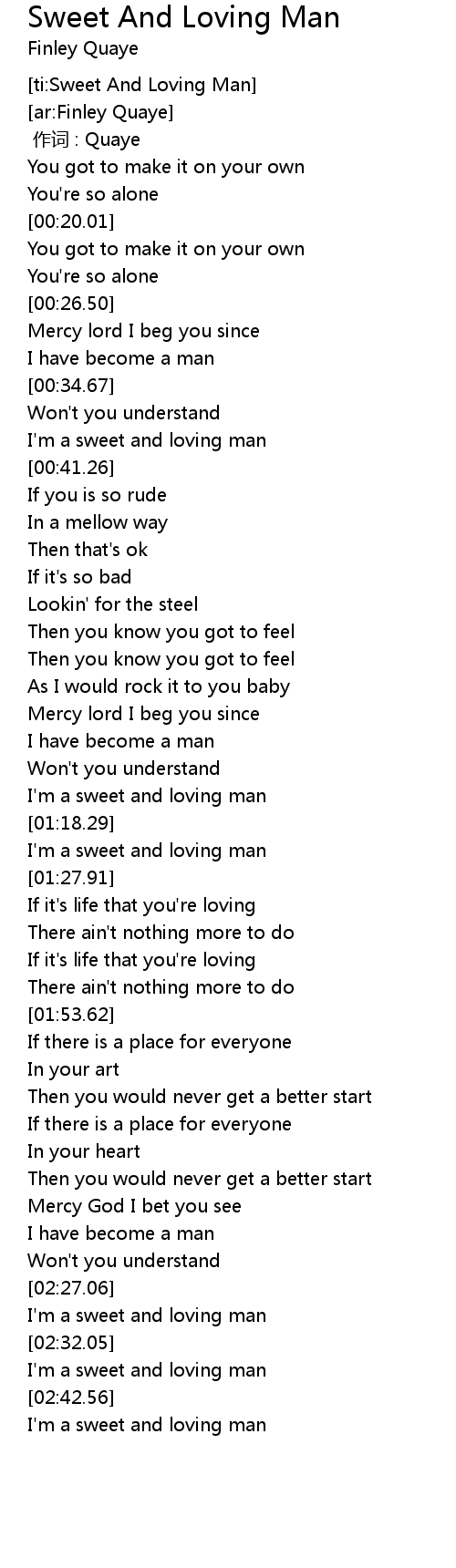 | [01:14.42] | I'm a sweet and loving man |