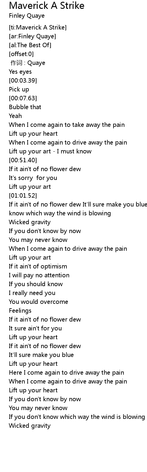 | [01:04.58] | If it ain't of no flower dew It'll sure make you blue If you don't know which way the wind is blowing |
