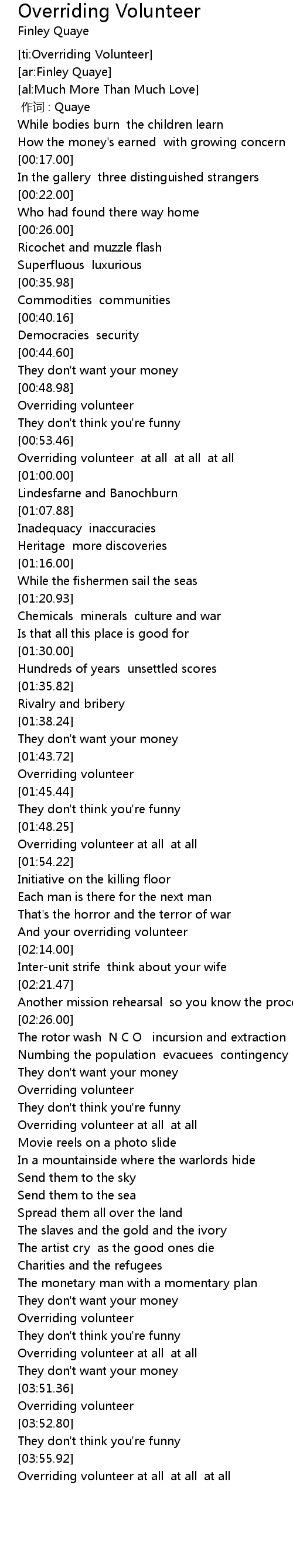 | [00:54.27] | Overriding volunteer at all at all at all |