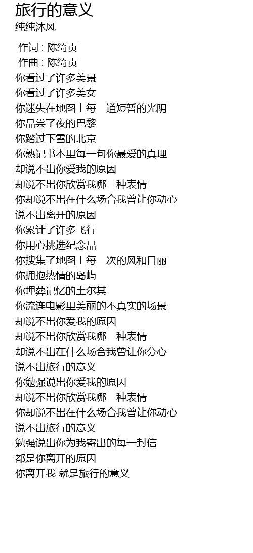 | [03:33.099] | ni li kai wo jiu shi lv xing de yi yi |