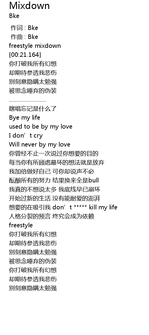 | [01:43.423] | 想要的在吸引我 don’t ***** kill my life |