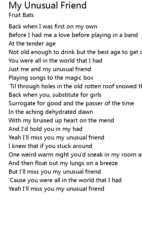 But I'll miss you my unusual friend |