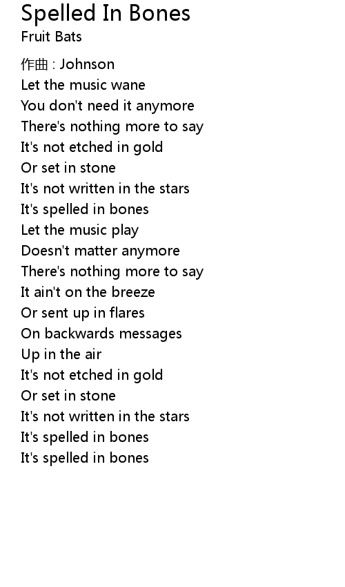 | Song | Spelled In Bones |