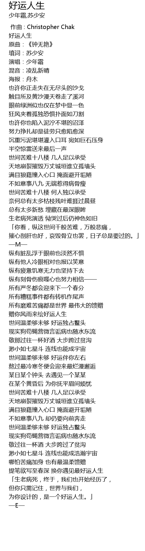 | [04:18.13] | 为你设计的,是一个好运人生。」 |