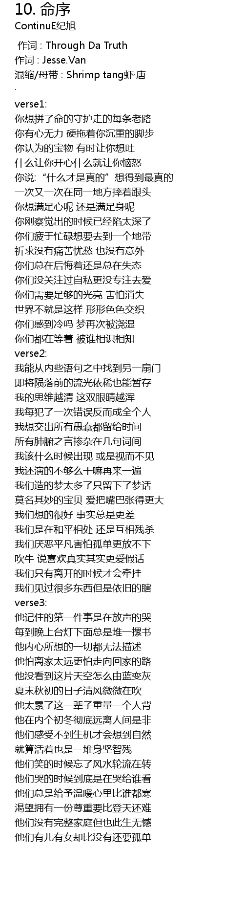 | [00:00.000] | 作词 : Through Da Truth |