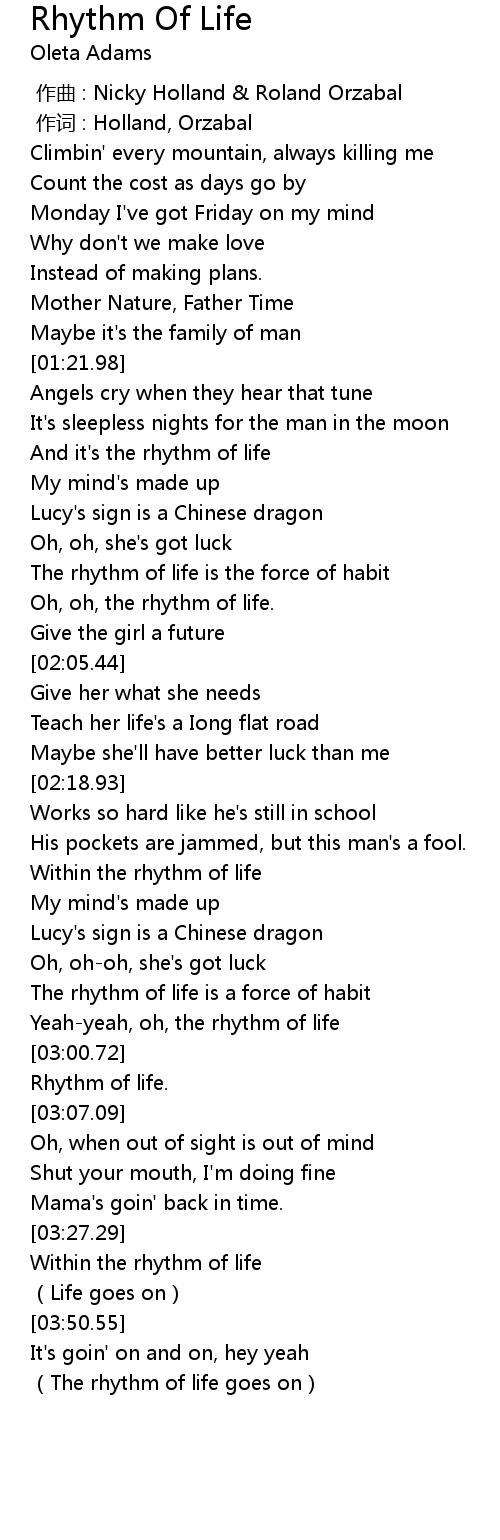 | [02:56.30] | Yeah-yeah, oh, the rhythm of life |