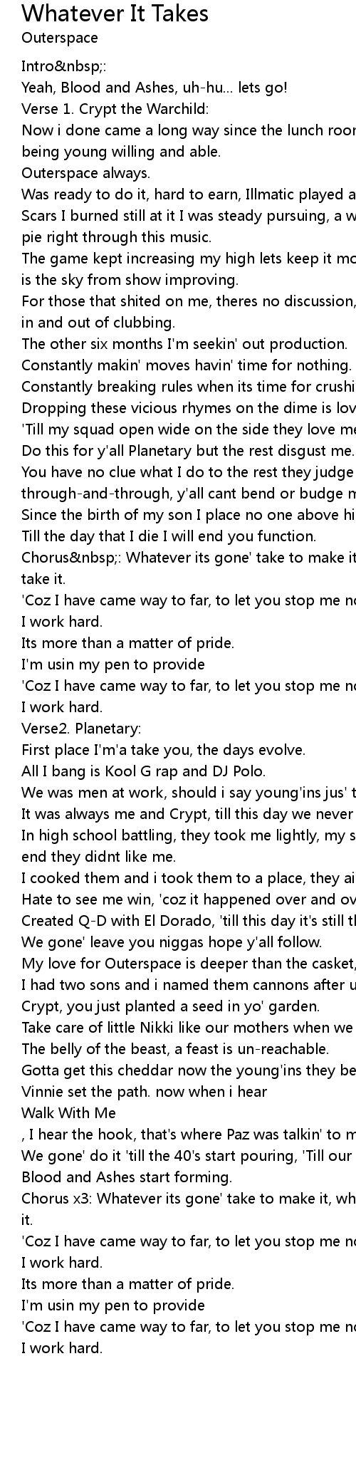 Chorus : Whatever its gone' take to make it, when I see my chance I'm'a take it.