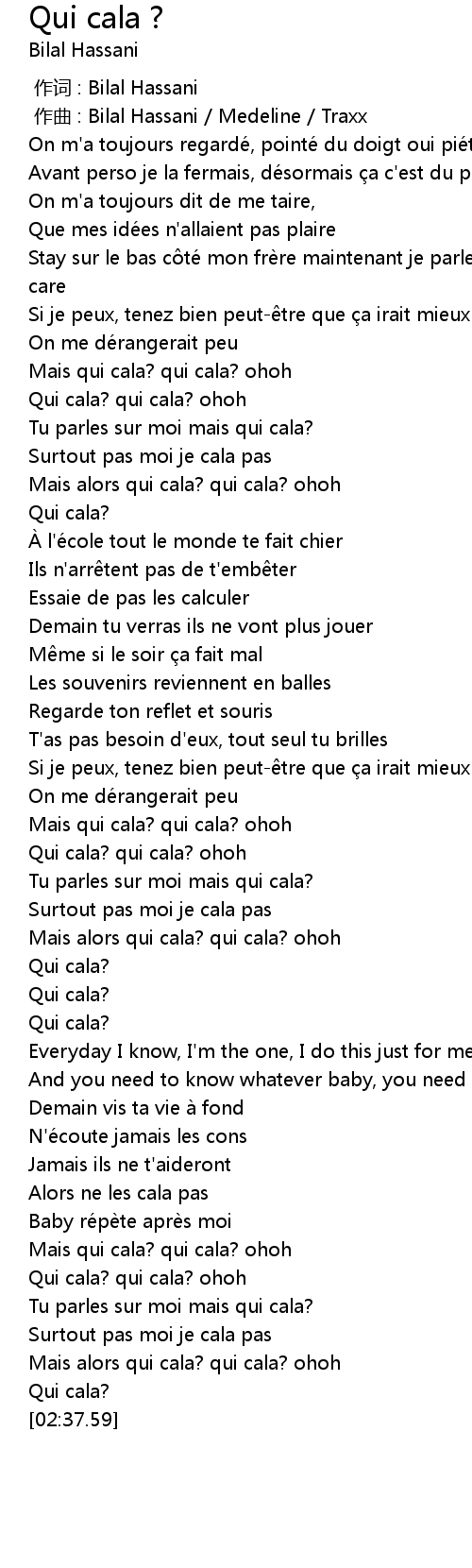 | [00:01.000] | zuo qu : Bilal Hassani Medeline Traxx |