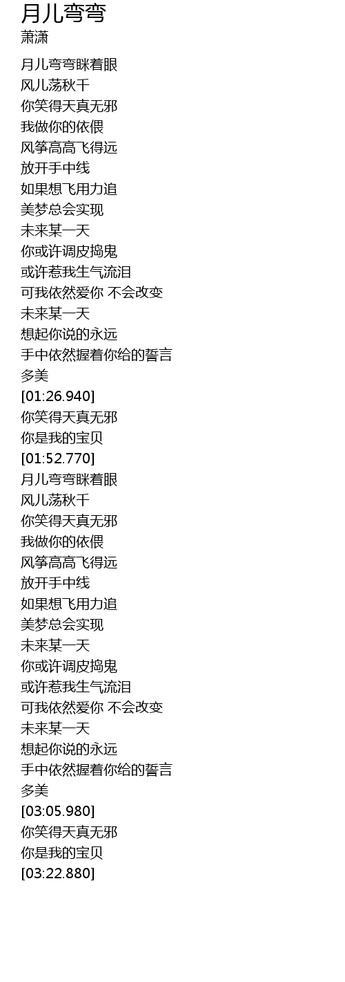 | [00:16.870] | 月儿弯弯眯着眼 |