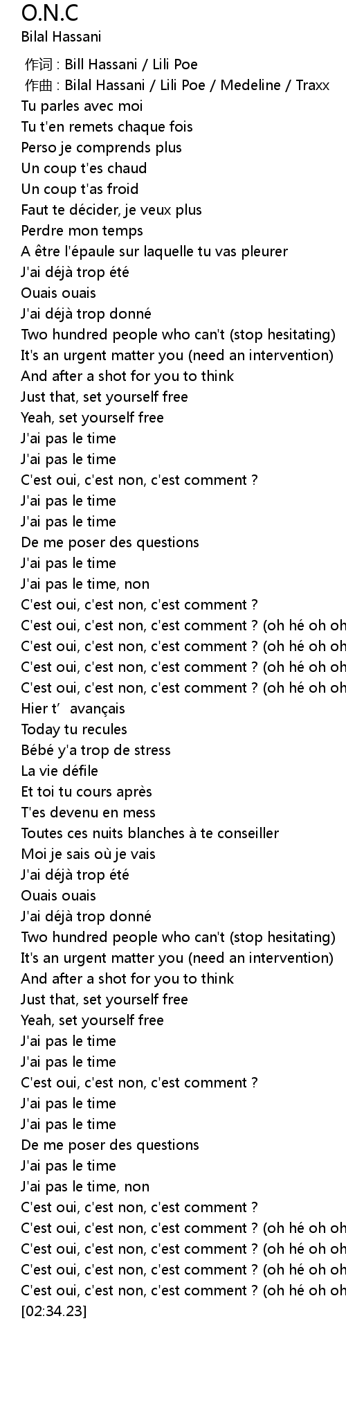 | [02:29.57] | C'est oui, c'est non, c'est comment ? (oh hé oh oh hé) |