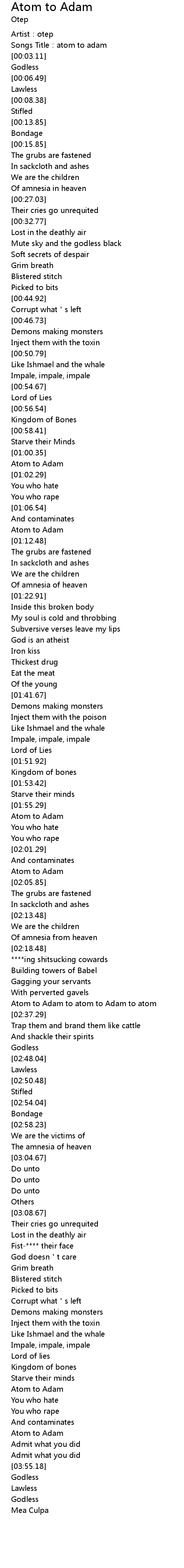 | [02:33.98] | Atom to Adam to atom to Adam to atom |