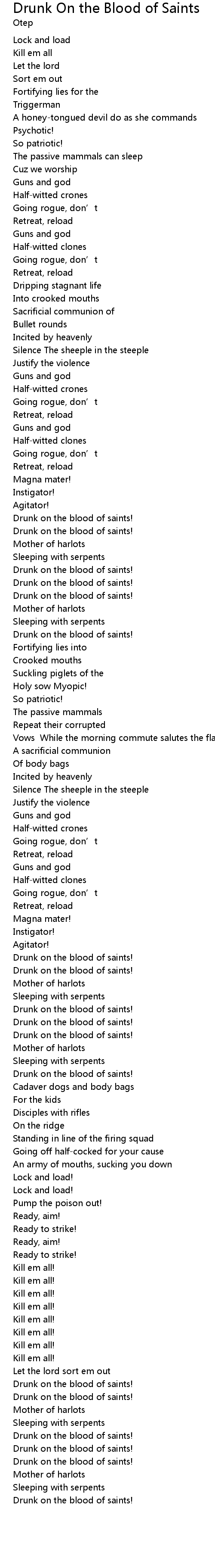 | Drunk on the blood of saints! |