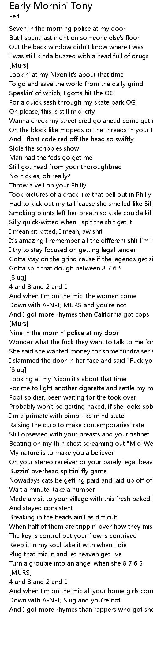 Early Mornin' Tony Lyrics