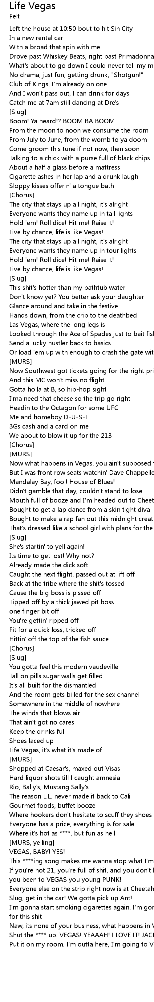 If you're not 21, you're full of shit, and you don't know shit bout life till you been to VEGAS you young PUNK! |