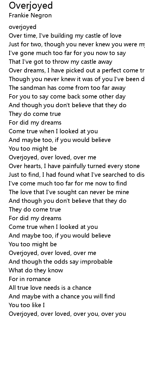 Overjoyed, over loved, over you, over you |
