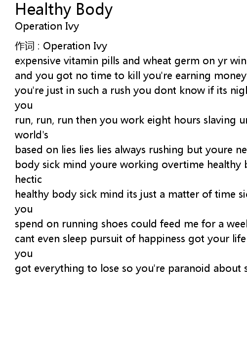| Song | Healthy Body |
