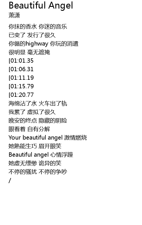 | [02:56.59][01:01.35] | Your beautiful angel 深藏不露 |