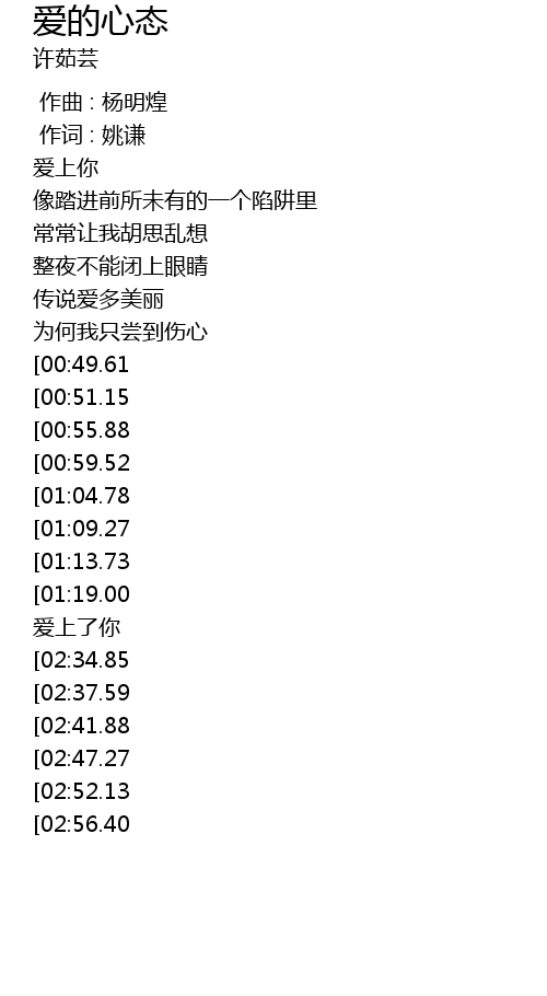 | [03:39.16][02:56.40][01:43.01] | 我爱你 |