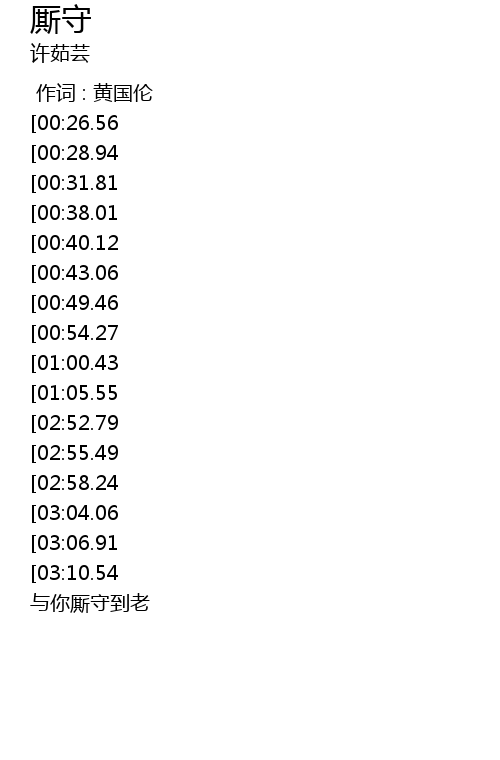| [03:29.64][03:06.91][01:28.17] | 与你厮守到天老 |