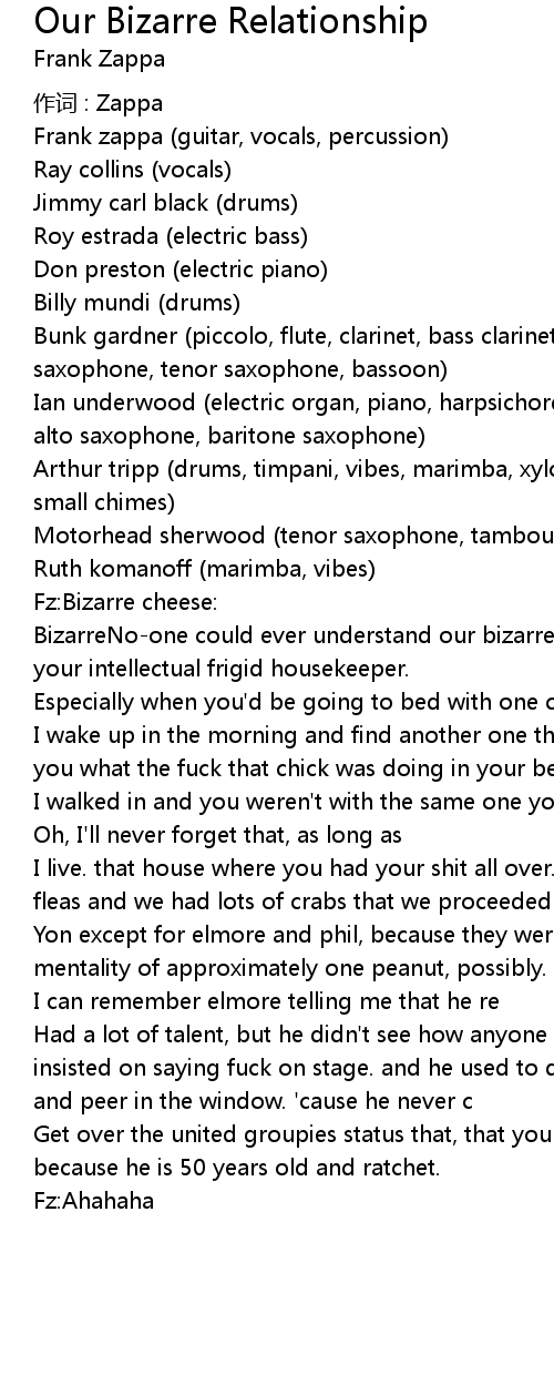 | BizarreNoone could ever understand our bizarre relationship because that was your intellectual frigid housekeeper. | |