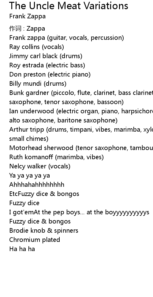 | Ian underwood (electric organ, piano, harpsichord, celeste, flute, clarinet, alto saxophone, baritone saxophone) | |