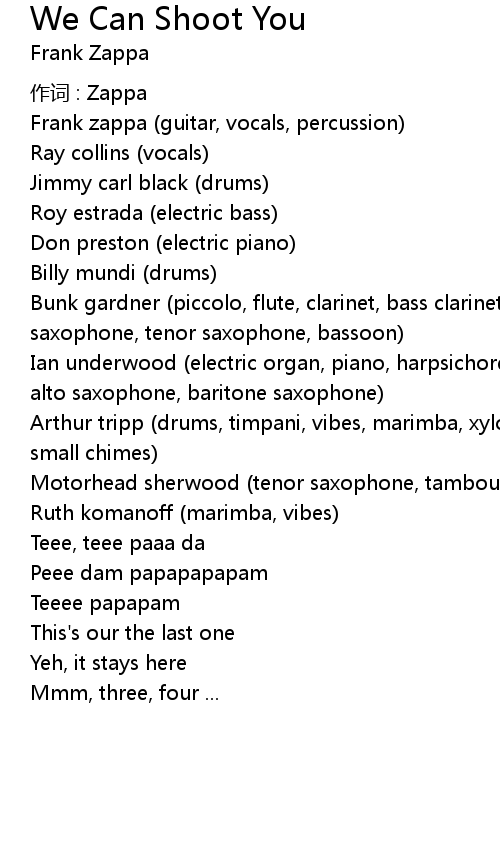 | Frank zappa (guitar, vocals, percussion) | |