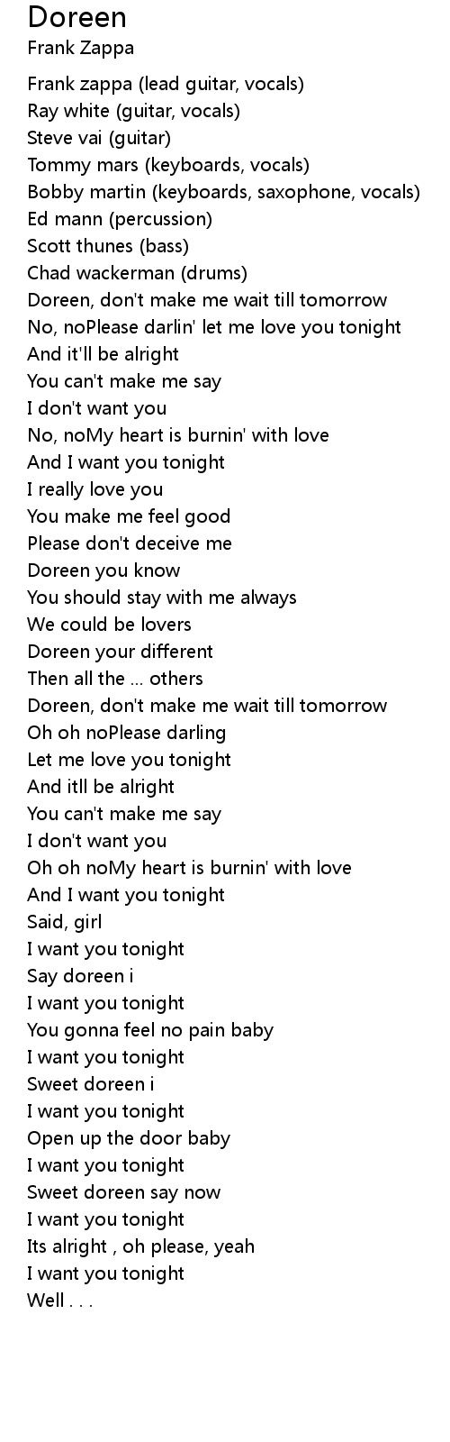 Doreen, don't make me wait till tomorrow |