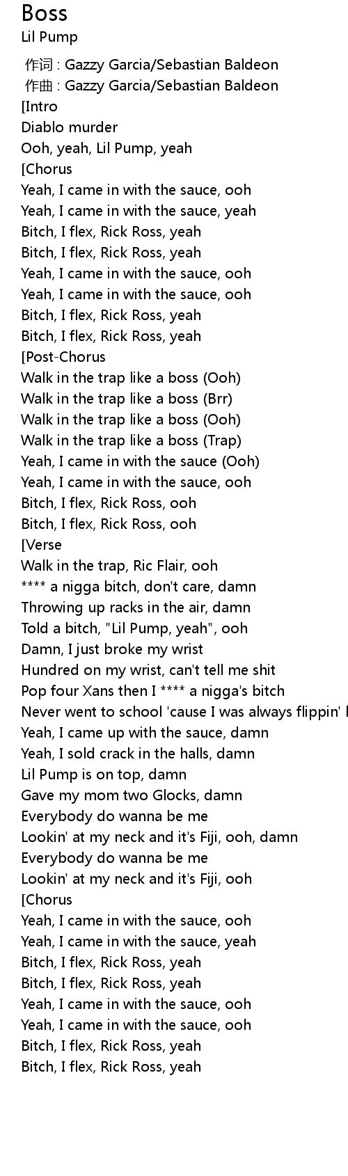 | [00:03.1] | Ooh, yeah, Lil Pump, yeah |