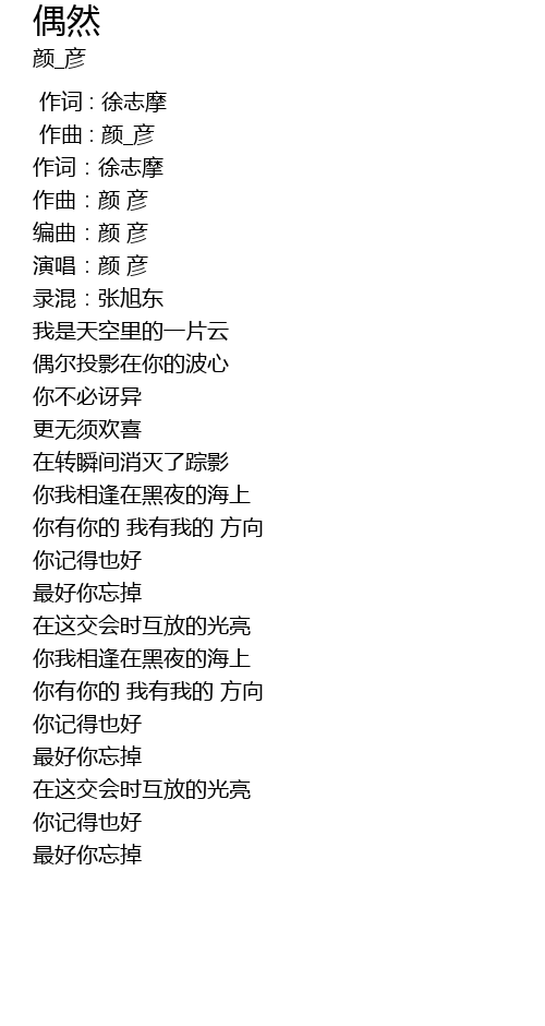 | [00:17.944] | 编曲:颜 彦 |