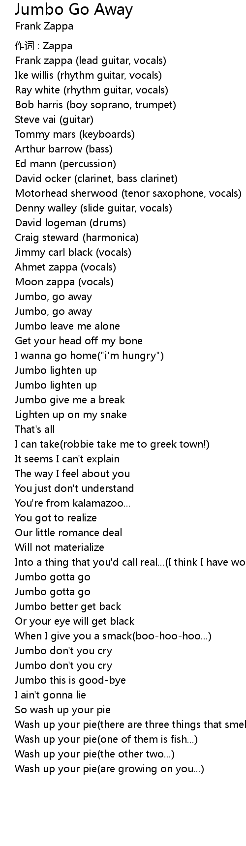| Song | Jumbo Go Away |