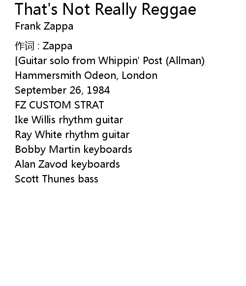 | Song | That's Not Really Reggae |