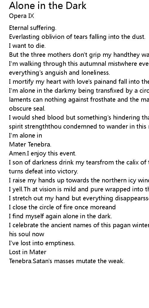 I would shed blood but something's hindering that to mewhich dark force gives my spirit strengththou condemned to wander in this mist thick as pain |