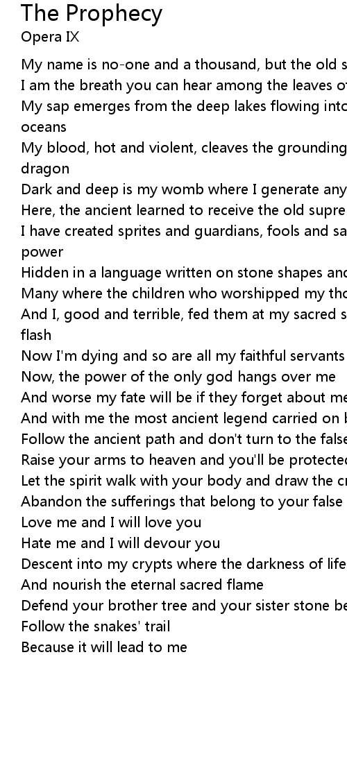 And I, good and terrible, fed them at my sacred springs with water and dragon's flash |