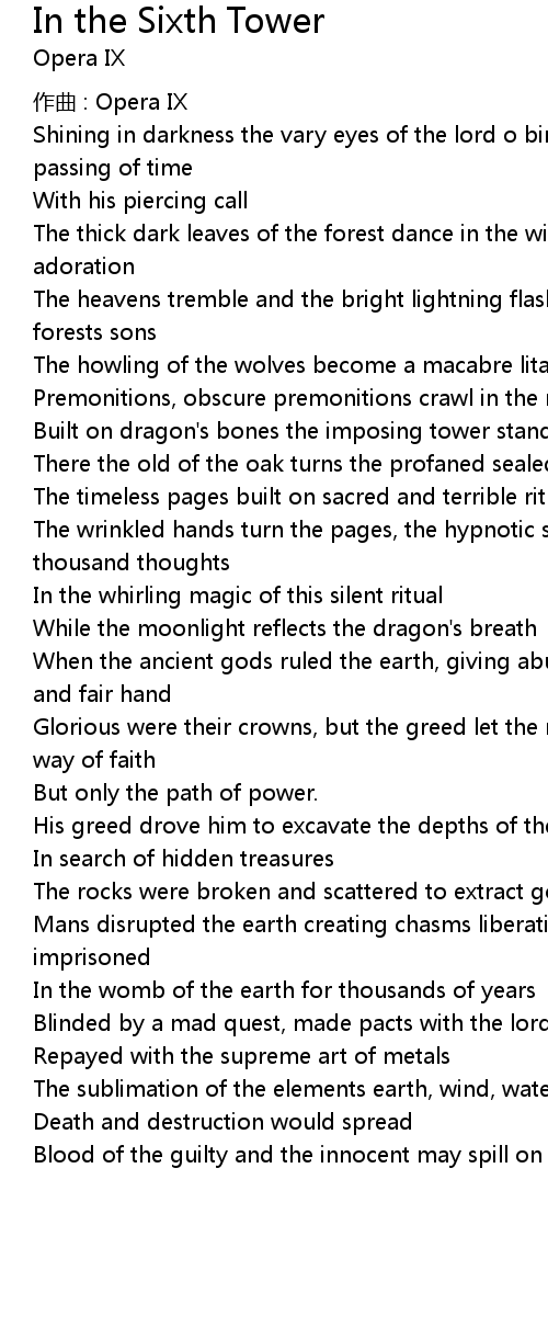 | Shining in darkness the vary eyes of the lord o birds of prey announces the passing of time | |