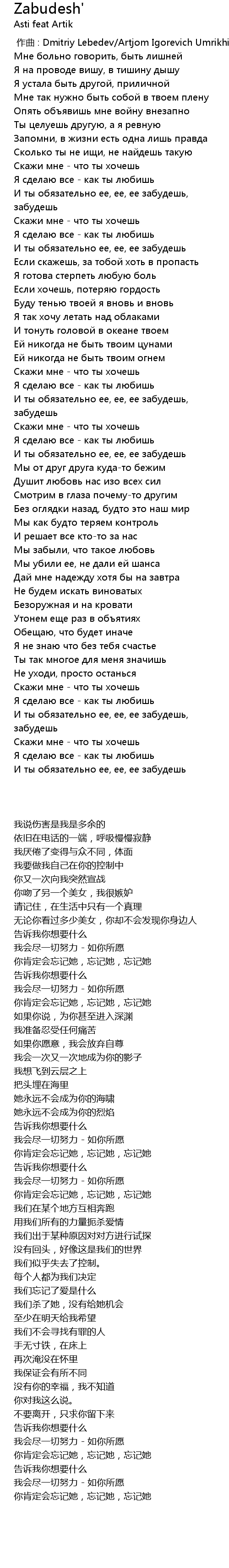 作曲 : Dmitriy Lebedev/Artjom Igorevich Umrikhin |