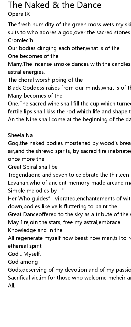 | An the Nine shall come at the beginning of the dance, the naked feet shall caress | |