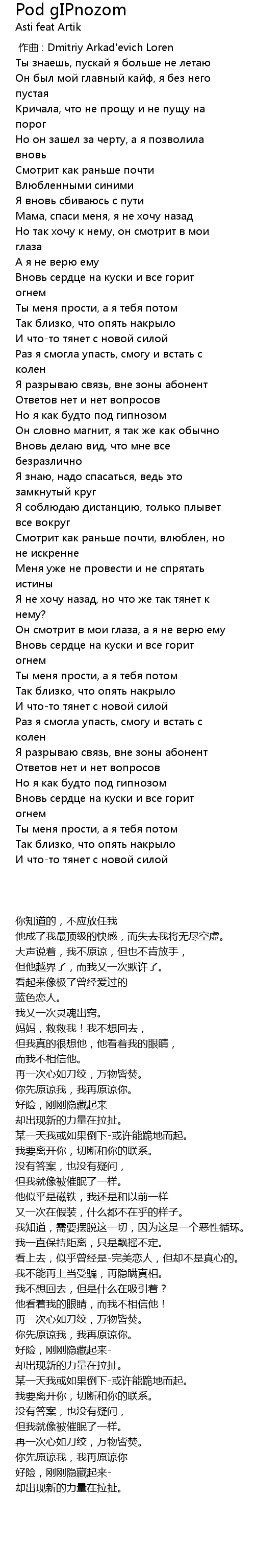 Но я как будто под гипнозом |