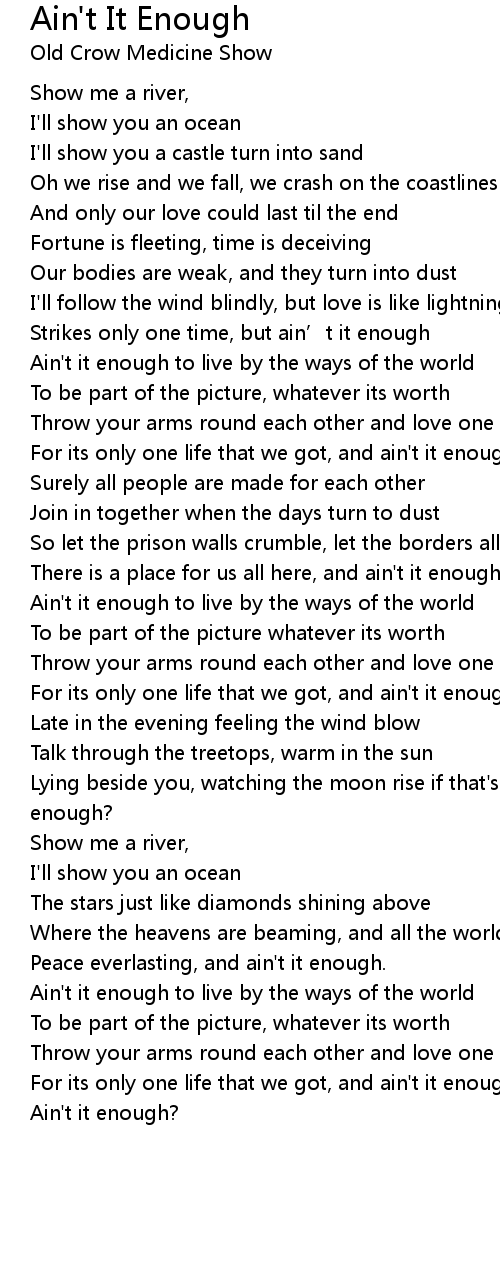 | Lying beside you, watching the moon rise if that' s all there is baby, ain' t it enough? | |