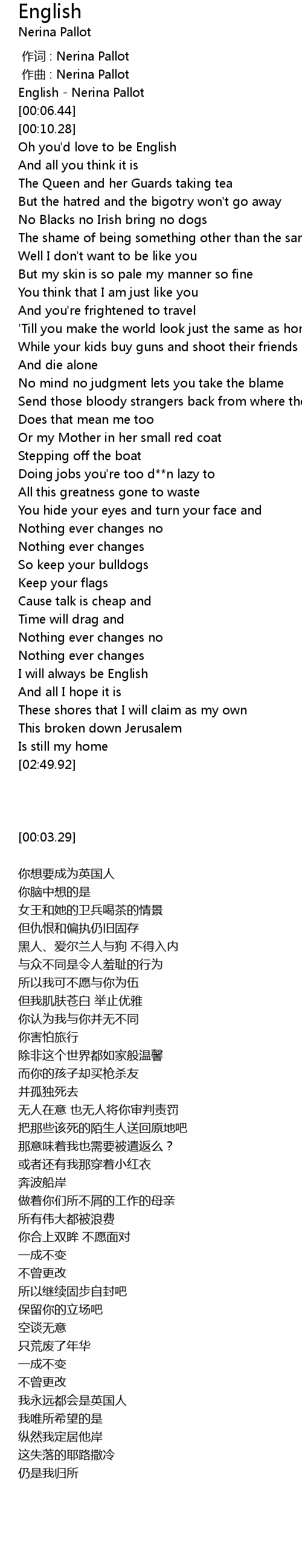 | [00:00.000] | zuo ci : Nerina Pallot |
