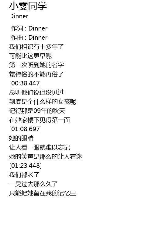 | [00:06.697] | wǒ men xiāng shí yǒu shí duō nián le |