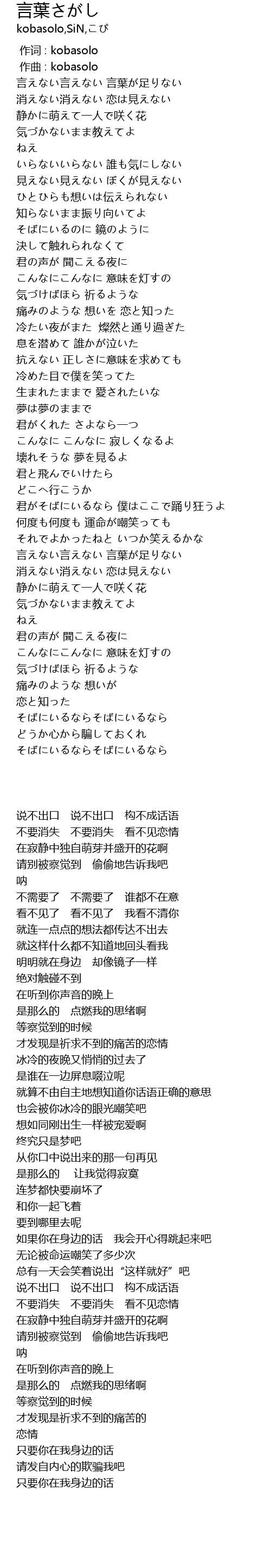 | [00:10.55] | 言えない言えない 言葉が足りない |