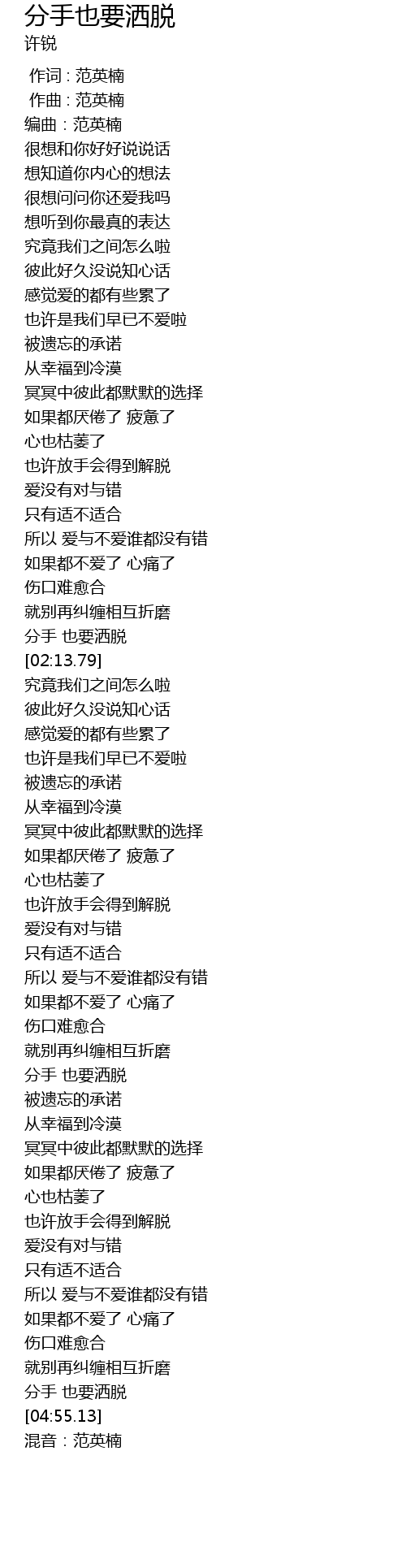 | [04:47.77] | fēn shǒu yě yào sǎ tuō |