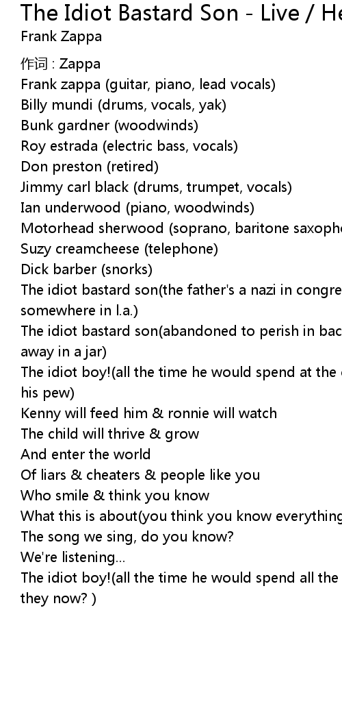 | The idiot bastard son(the father's a nazi in congress todayThe mother's a hooker somewhere in l.a.) | |