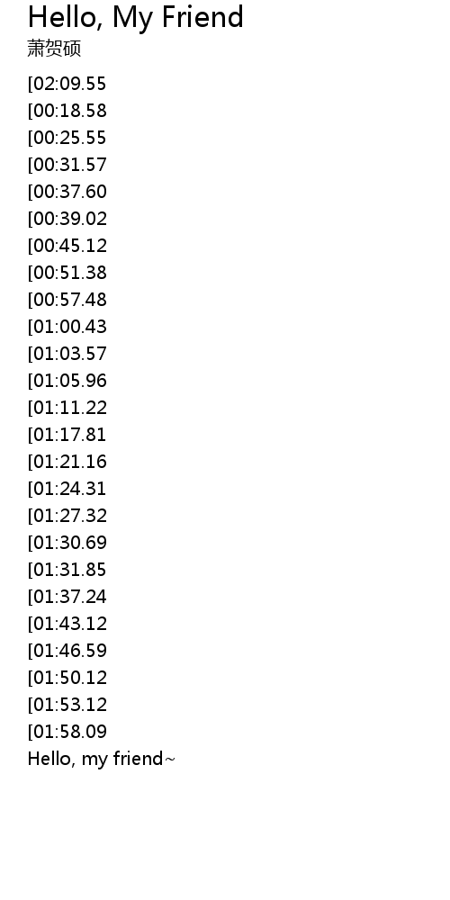 | [03:49.58][01:53.12] | hái yào chàng zhè shǒu Hello, my friend |