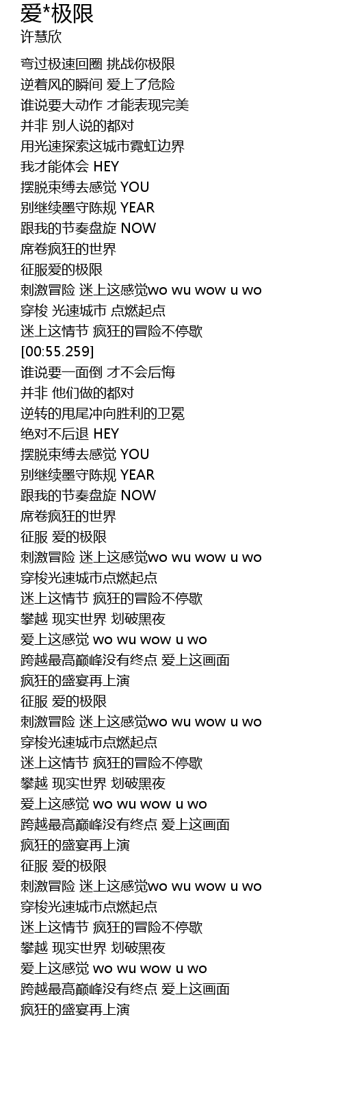 | [02:59.897] | 征服 爱的极限 |