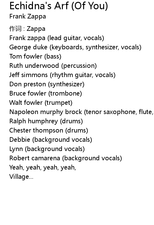 | Frank zappa lead guitar, vocals | |