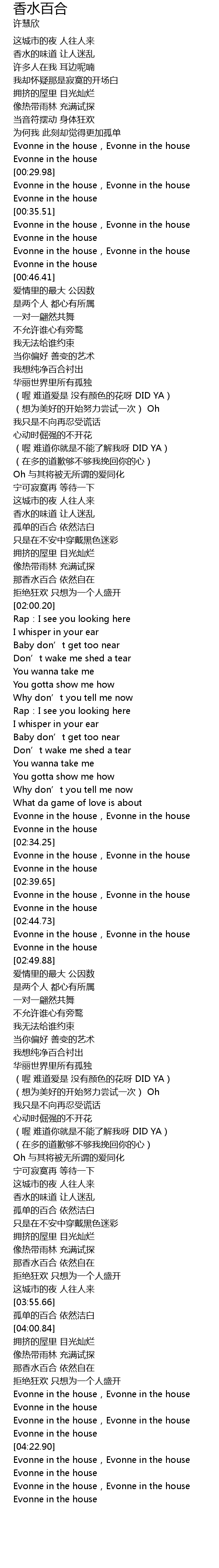 | [00:31.42] | Evonne in the house,Evonne in the house |