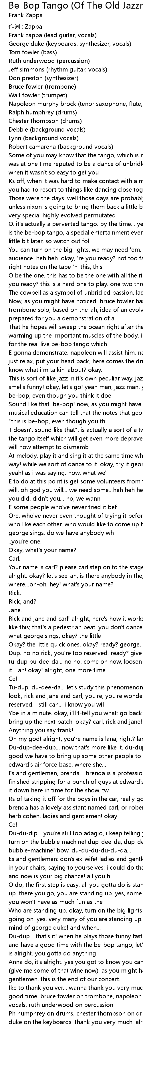 | Du-dup... that's it! when he plays those funny fast little notes, twitch around and have a good time with the be-bop tango, let's try it! anything you wanna do is alright. you gotta do anything | |