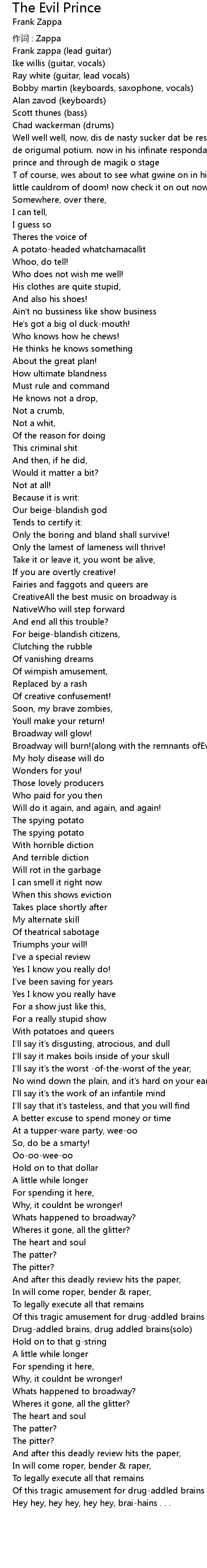 | Well well well, now, dis de nasty sucker dat be respondable fo de enwhiffment o de origumal potium. now in his infinate respondable party personage as de evil prince and through de magik o stage | |