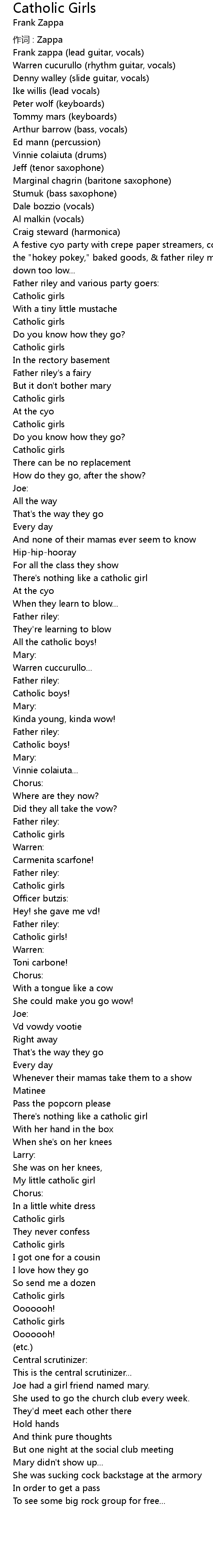 | Frank zappa lead guitar, vocals | |